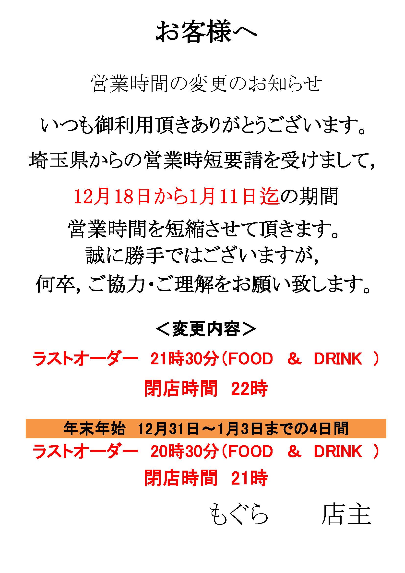 ← 年末年始営業及び営業時間変更のお知らせ(12月28日~1月11日)